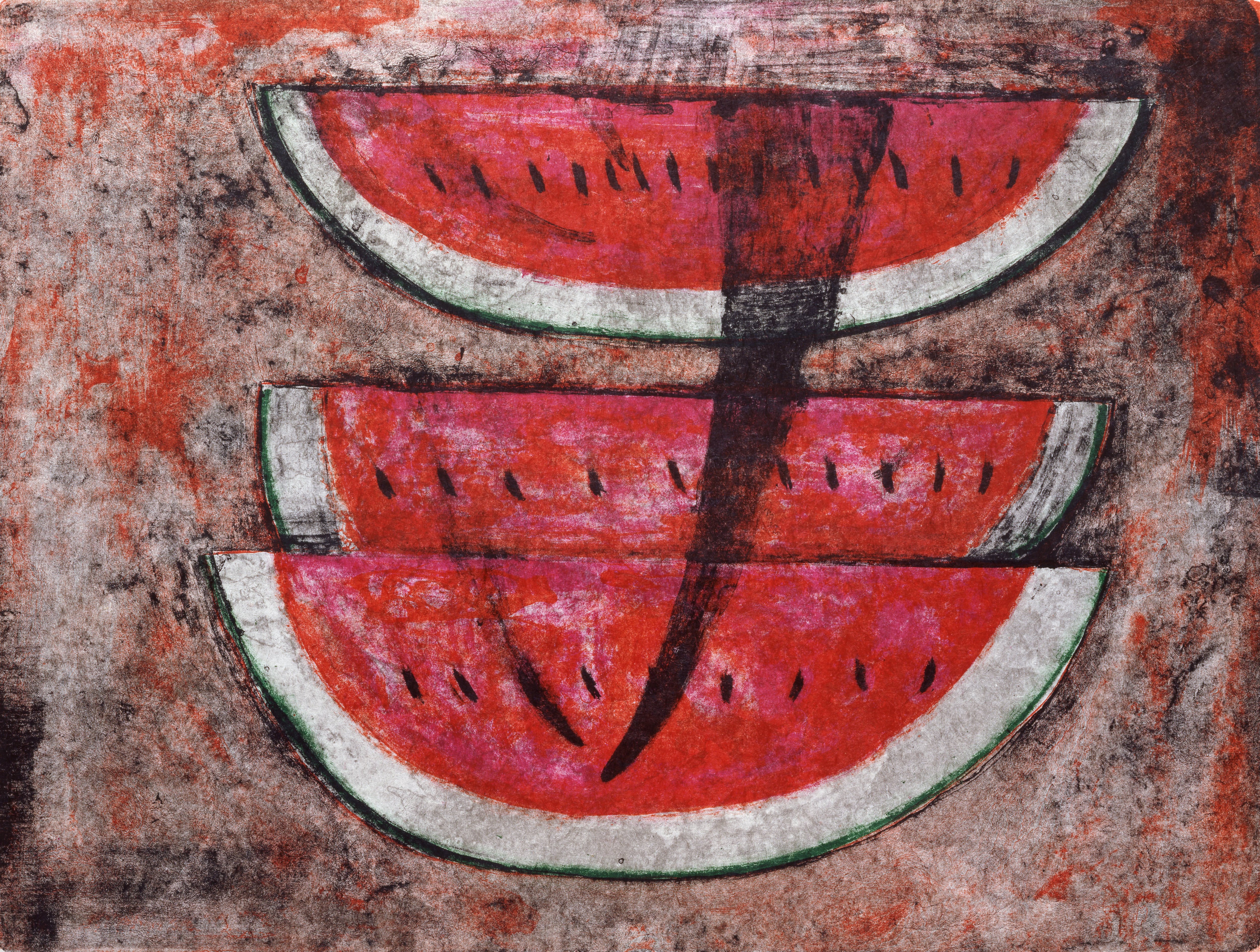 La exposición incluye algunas de las magnéticas frutas de Tamayo, sus sandías desbordadas de rojo. No era mera decoración, sino una decisión política: este era un arte para el pueblo. “Su manera de representar lo popular, y al pueblo, era a través de los colores y los motivos. No era partidario, aunque sí dijo que era político; lo que no quería era que su obra fuera encargada por el Estado”, explica Hidalgo.