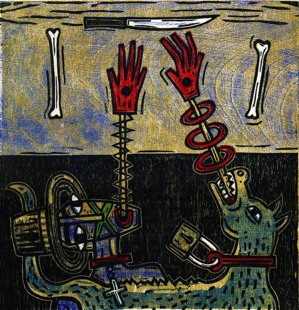 Es realmente interesante como Arguedas, en el capítulo titulado Conceptualización y reflexiones en torno a la técnica del grabado, en La necesidad, construye un hilo conductor entre el trabajo en xilografía de dos artistas de generaciones muy alejadas: Francisco Amighetti (considerado padre de la cromoxilografía) y Sila Chanto (primera artista significativa en romper con los paradigmas tradicionales del medio).