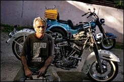 Mientras ellos trabajan, el dueño charla con un entusiasta que estacionó su Knucklehead verde olivo de 1947 en el patio, a la que le da un impulso para conseguir arrancar su motor 1.000 cc provocando un distintivo rugido, una dulce melodía para los amantes de las Harley, conocidos aquí como "harlistas".