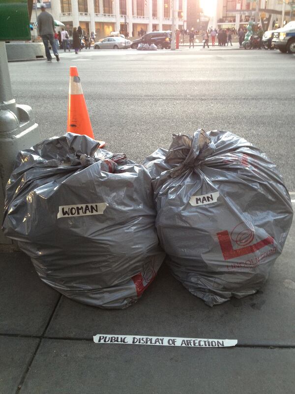 Para Kader, su intervención interpela a los peatones desprevenidos a reconsiderar su entorno. “Al intervenir las bolsas con una cinta que dice ‘mujer’, creo inmediatamente una especie de espejo entre todas las mujeres que pasarían enfrente y esta bolsa de basura”, argumenta.