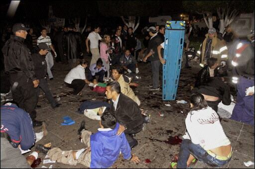 MEXICO (AFP) Un atentado con explosivos dejó al menos siete muertos y unos 100 heridos durante la celebración popular del Grito de la Independencia en el centro de la ciudad mexicana de Morelia, capital del estado de Michoacán (oeste), cuyo gobernador tildó el hecho de "acto terrorista".