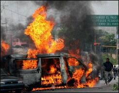 La mayor parte de los autobuses urbanos estaba fuera de servicio. "Sólo salieron a trabajar los chóferes mas valientes y con autobuses viejos, los empresarios tienen temor que sus unidades nuevas sean incendiadas", explicó Erasmo Medina, representante de una empresa de transporte urbano.