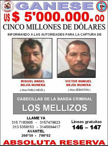Santos aseguró que "Los Mellizos" eran "los delincuentes más buscados" junto con los jefes de la guerrilla marxista de las Fuerzas Armadas Revolucionarias de Colombia (FARC), y los más perseguidos entre los barones de la cocaína.
