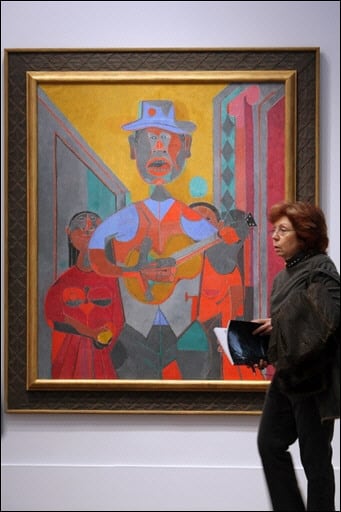 Pintado en 1945, el retrato figurativo de un hombre con una guitarra fue objeto de una puja frenética entre dos ofertantes por teléfono, cuyo desenlace fue saludado con una ovación en la sala.