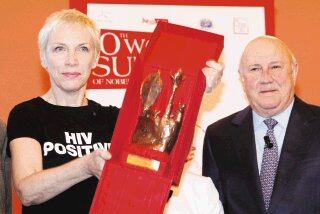 Annie Lennox, que llevaba una camiseta en la que se leía "HIV Positivo", recibió como premio una estatuilla de bronce de manos del expresidente de la república sudafricana Frederik de Klerk, premio Nobel de la Paz en 1993 por las reformas que acabaron con el apartheid en 1991.