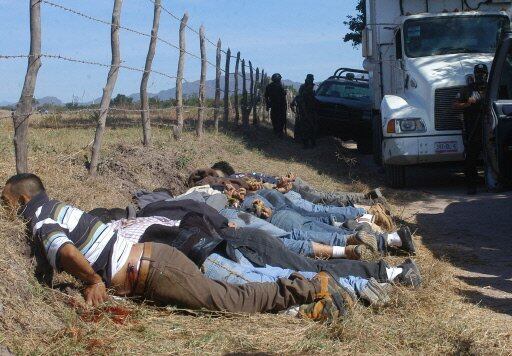 Once cuerpos decapitados, apilados y agarrados de los brazos entre ellos descubiertos en el sureste de México; otras nueve cabezas formadas en el piso, encontradas en el otro extremo del país, en Tijuana, son algunas de las escenas que durante 2008 vieron horrorizados los mexicanos.