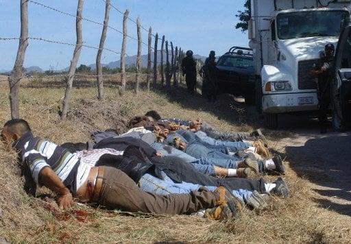 Las decapitaciones se convirtieron en 2008 en México en el cruel sello de una escalada de la guerra entre narcotraficantes, responsable de la mayoría de los más de 5.000 asesinatos registrados en el año, una cifra récord que no deja de crecer por decenas día a día. Cuerpos descubiertos en un bus en San Ignacio, México, el 4 de diciembre de 2008, masacrados por mafias de narcotráfico. | AFP