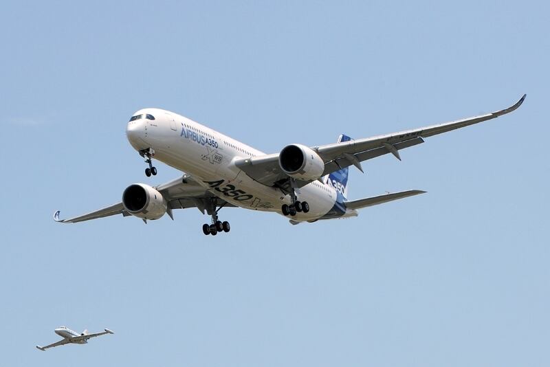 El Airbus A350 tiene dos reactores y está construido en más del 53% con materiales compuestos, más ligeros que las aleaciones metálicas habituales como las que tiene el 787 Dreamliner de Boeing.