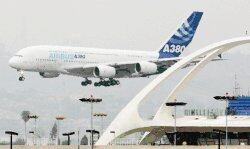 Los Angeles, EE.UU. (AFP). El avión más grande del mundo, el "superjumbo" Airbus A380, tocó por primera vez este lunes suelo estadounidense en las pistas de Los Angeles y Nueva York, donde pondrá a prueba sus condiciones comerciales, con más de 500 pasajeros invitados en el vuelo que aterrizó en la Gran Manzana.