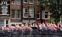 Las fotos de Spencer Tunick se podrán ver a gran tamaño en el centro de Amsterdam del 23 de junio a finales de agosto.