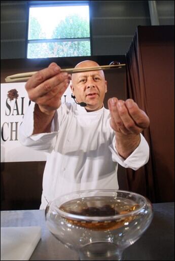 Ambos trabajaron un menú especialmente elaborado para la exposición, compuesto de nabos japoneses, bogavantes a la americana y peras "Belle Hélène", desestructurados en esas "bolitas" de sabor, del grosor de las huevas de salmón.