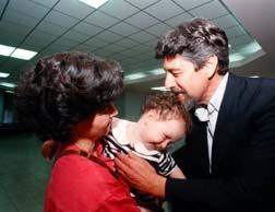 Allí fue recibido por su esposa, la economista Silvia Charpantier, y su hija Amanda, de año y seis meses, quien abrazaba cálidamente a su papá. También acudió a saludarlo su suegra, la periodista Lidiette Brenes.