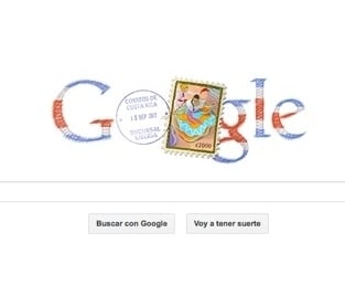 San José (Redacción). El buscador de Google se unió a las celebraciones patrias costarricenses de hoy 15 de setiembre. En su página de inicio muestra una estampilla decorada con una pareja bailando típico y con el sello de Correos de Costa Rica, en honor al país.