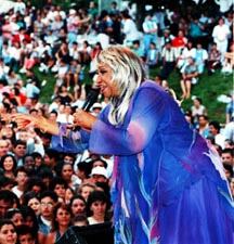 El ambiente estaba en su punto el domingo a las 4:45 p. m., hora en la que la cantante cubana Celia Cruz hizo su aparición en la tarima de Plaza Ferias.