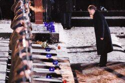 Brzezinka, Polonia. Líderes mundiales y sobrevivientes del campamento de concentración de Auschwitz conmemoraron hoy el 60 aniversario de su liberación al final de la Segunda Guerra Mundial, en una cermonia realizada en el mismo lugar donde los médicos nazis enviaban a sus víctimas a las cámaras de gas.