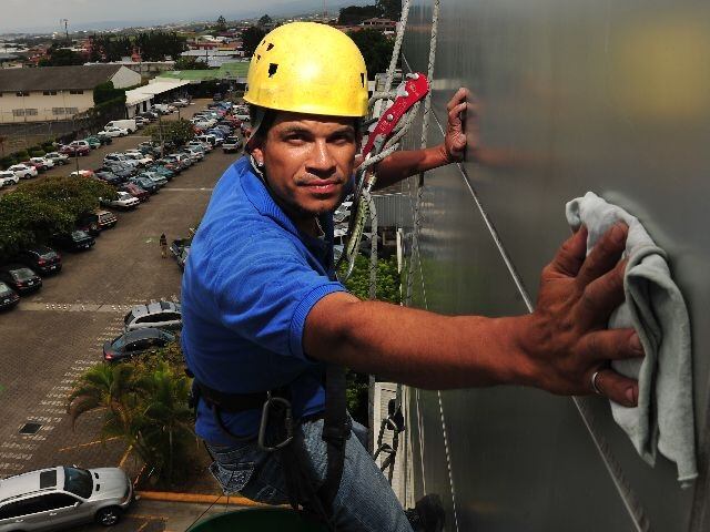 Su especialización en higienizar ventanas le ha permitido estar en la cima de los edificios más altos de Costa Rica. Además, su facilidad para trepar lo ha llevado hasta la punta del mástil de un