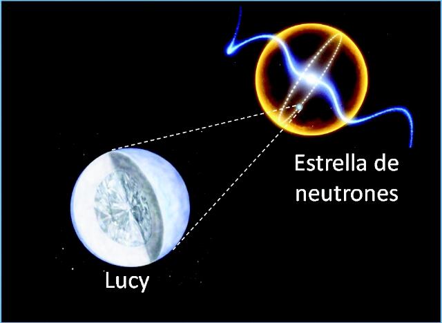 Con un tamaño 350 veces más grande que la Tierra, el diamante Lucy corresponde al centro de un planeta que gira alrededor de una estrella de neutrones en la constelación Centauro, a unos 50 años luz de distancia del Sol, por lo que la avaricia nunca podrá alcanzarlo.