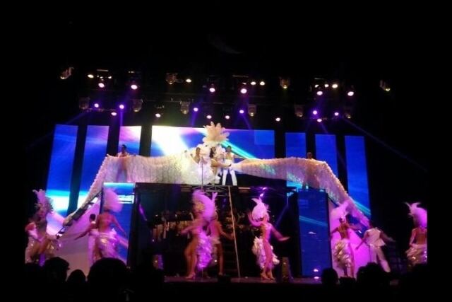 La actriz y cantante subió en su cuenta en Twitter una foto de uno de los momentos en los que ella estaba bailando en el escenario. En este musical participan 60 personas entre actores, bailarines, vestuaristas y maquillistas, entre otros.