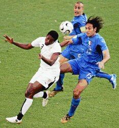 Los primeros compases fueron de dominio italiano, un equipo que llegó a Alemania masticando la amargura de su eliminación en la segunda ronda en el mundide Pirlo por la banda derecha, pero se encontró con un conjunto africano que se plantó firme y con su arquero Richard Kingston bastante acertado.