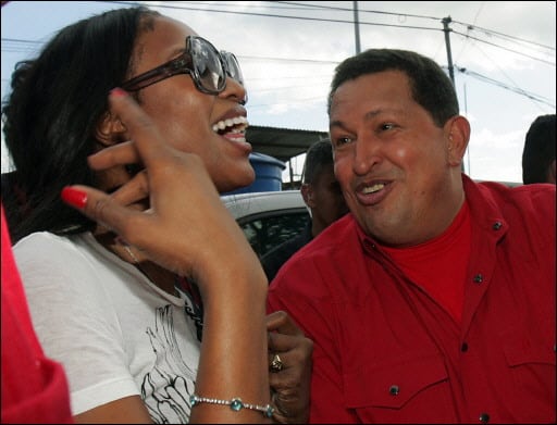 La modelo inglesa y Chávez, quien de cuando en cuando mostraba su faceta más seductora apretando cariñosamente su mano o pasándole el brazo por encima del hombro, recorrieron a pie un barrio del oeste de Caracas beneficiado con viviendas populares.