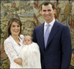 El príncipe Felipe, heredero de la Corona española, se casó en mayo de 2004 con Doña Letizia Ortiz, ex periodista, con quien tiene dos hijas, las Infantas Leonor y Sofía, está última recién bautizada el pasado domingo en una ceremonia en el Palacio de la Zarzuela, residencia oficial de la Familia Real española.