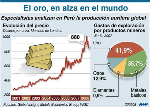 Sus pronósticos sobre el precio del oro lo ubican en 927 dólares este año, en 1.100 dólares en 2009 y en 1.000 dólares en el 2010.