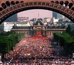 La llegada de Juan Pablo II a la Jornada Mundial de Juventudes, en el Campo de Marte, tuvo una calurosa acogida de medio millón de jóvenes de 140 países, entre ellos 91 de Costa Rica, que lanzaron sus gorras al aire y agitaron cientos de banderas, entre las que sobresalieron la francesa, la española y las de diversas naciones latinoamericanas, incluida Cuba.