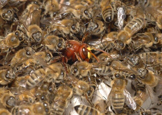 Un parásito que vive en la mosca Apocephalus borealis , nativa de los Estados Unidos, infecta a las abejas productoras de miel ( Apis mellifera ), haciendo que estas abandonen sus colmenas y mueran poco después.