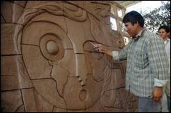 El artista aymara acomete ahora un nuevo reto: la creación de un mural de 2,5 x 3 metros y una tonelada de peso que coronará el frontis del liceo franco boliviano de La Paz, que lleva el nombre del preclaro investigador francés.