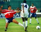 "Fijáte. Mirá cómo juegan la línea de cuatro. Estos me tienen contento.... pero me vas a matar Wright con esa jugada; date vuelta y esperá. Te decía, me siento contento porque se han acoplado a jugar la línea de cuatro. ¿Por qué voy a meter a un líbero si me puedo ganar un delantero? Esa era la razón por la cual Costa Rica, con los delanteros que tiene, no hacía goles en el pasado. ¡Qué bola, Berry! ¡Qué bola le has puesto al enano!... Así te quiero ver. ¡Así es Berry!