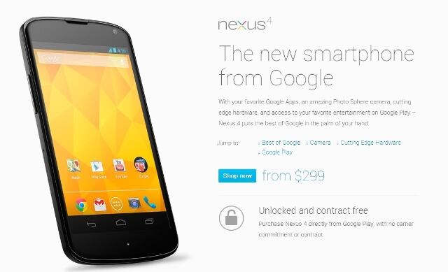 Con un precio inicial de 299 dólares para teléfonos no vinculados a ninguna compañía, y por lo tanto no subsidiados por las empresas de telecomunicaciones, los modelos Nexus 4 fueron considerados una ganga al poder adquirirse a la mitad de precio que los similares iPhones de Apple "desbloqueados".