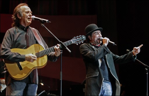 El catalán Serrat (64 años) y el andaluz Sabina (58), con su ya clásico sombrero bombín, se dieron el gusto de cantar juntos y separados canciones propias y del otro.