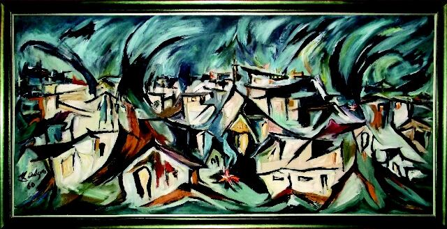 Cuando pienso en toda la memoria histórica que nos han negado en nuestros países, llego a entender por qué nacimos sin asideros reales que nos permitieran sentirnos personas sustentadas en la verdad de patria, y no en esa falsa verdad antipatriótica en la que hemos sido sumergidos. Este cuadro es mi manera de sentir el tugurio tal como lo he vivido, con su agitado contenido humano.