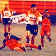 El encuentro fue lento y pleno de imprecisiones. La desesperación por alcanzar el triunfo hizo que los locales cayeran en reiteradas equivocaciones, como al minuto 8 en que el brasileño Geraldo da Silva casi incurre en autogol ante centro de Cristian Guevara.