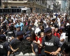 Así transitaron unas tres cuadras, hasta que la policía logró subir a los argentinos a un vehículo, y llevarlos al puerto, donde aguardaban la salida del próximo ferry.