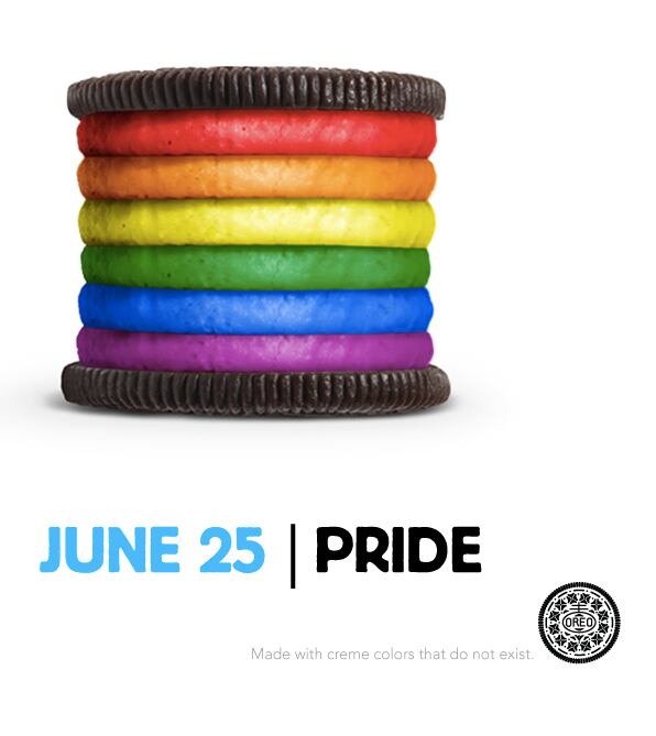 El 25 de junio del 2012 Oreo publicó este mensaje en su Twitter: Celebrate your pride for loving who you love!. (Celebrá tu orgullo por amar a quien amás!), y agregó su increíblemente popular hashtag #dailytwist, así como la imagen que inmediatamente se viralizó en todo el mundo.