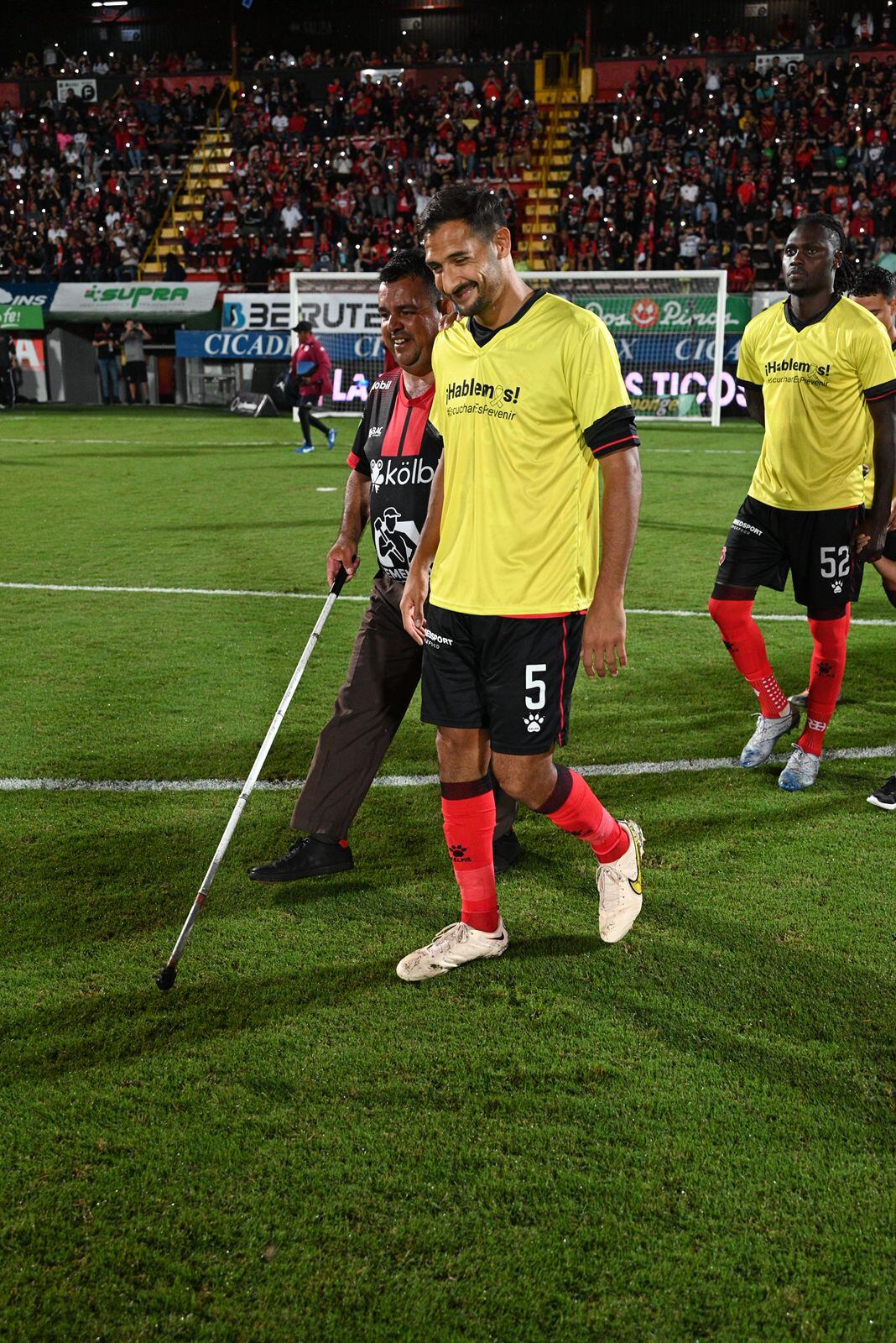 Caminaba junto a ese futbolista que tanto admira y también iba muy cerca de Giancarlo González, apoyado en su bastón y sintiendo esa mezcla de nervios y ansiedad que experimenta cualquier futbolista cuando ingresa al terreno de juego.