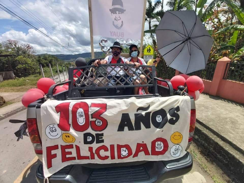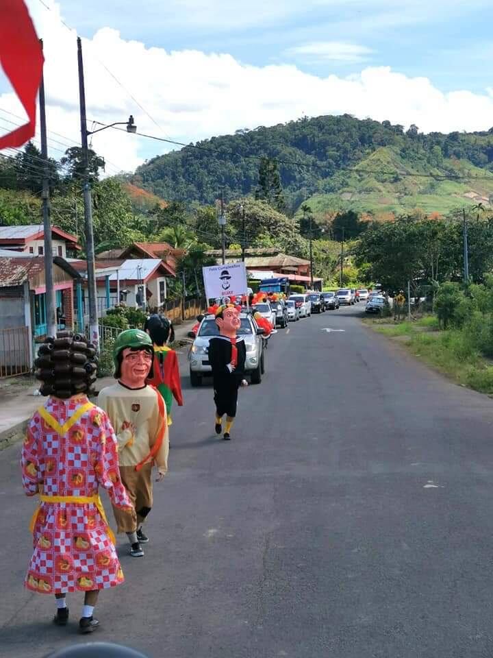 Los festejos comenzaron desde el día anterior, en Pejibaye de Jiménez, en Cartago. No fue como en otros tiempos, por la pandemia, pero hubo una caravana con comparsa incluida.