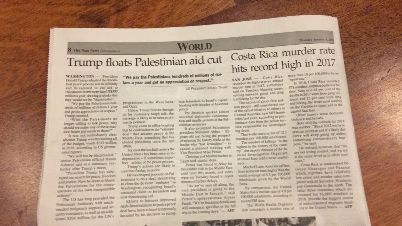 Un artículo sobre Costa Rica se publicó este jueves en el periódico en inglés vietnamita Viet Nam News, pero el contenido no alaba las bellezas escénicas de nuestro país ni la flora o fauna. Tampoco habla maravillas de las playas ni sobre la amabilidad de la gente.