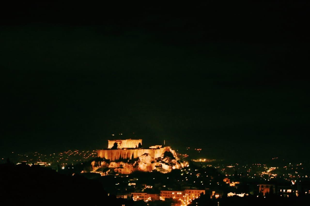 Entre las luces de la ciudad sobresale un lugar lleno de historia: la Acrópolis.