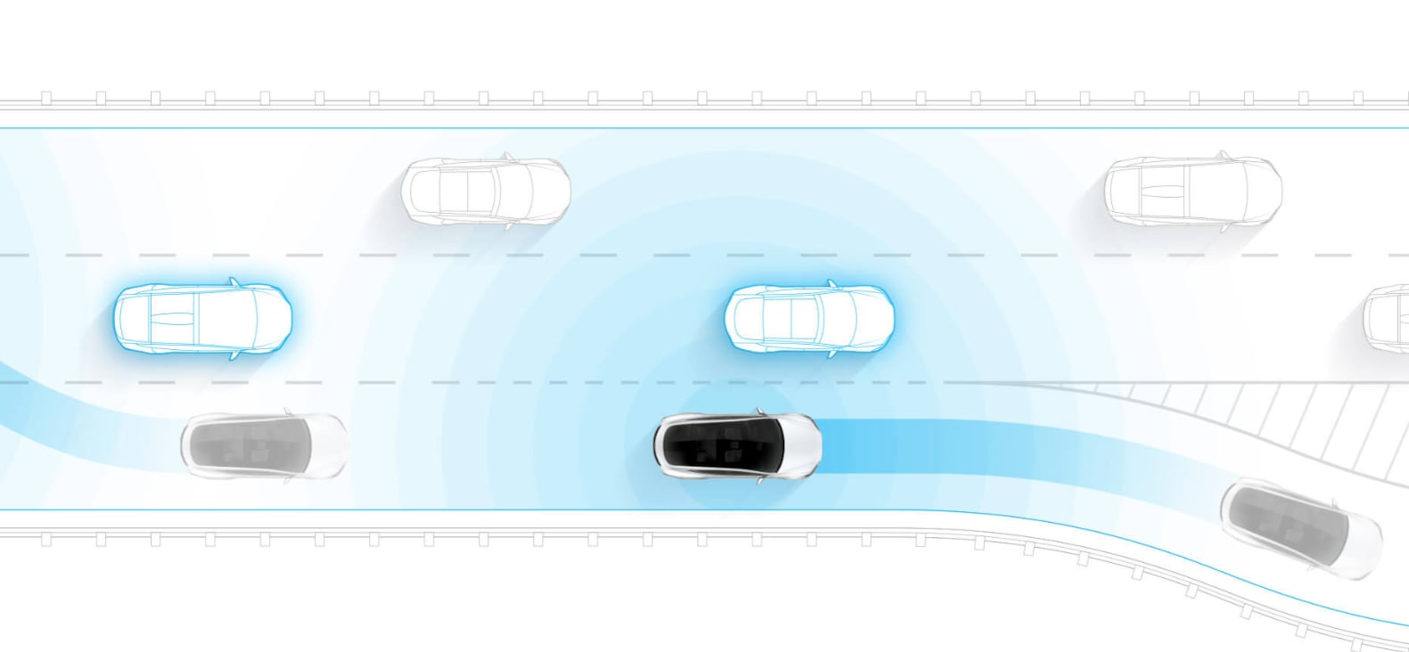2-- Sugerencias y cambios direccionales de timón en carreteras bien demarcadas. El vehículo puede sugerir cambios de carril en autopista para optimizar la ruta y realizar ajustes para que uno no se quede atrapado detrás de carros o camiones lentos. Cuando está encendido, el Autopilot dirige automáticamente el vehículo hacia los cruces y salidas de las autopistas, tomando en cuenta el destino que programamos. (Esto se realiza automáticamente pero con el piloto atento al volante, de ser necesario. Y es solo para autopistas o carreteras; no para manejos en ciudad en calles normales).
