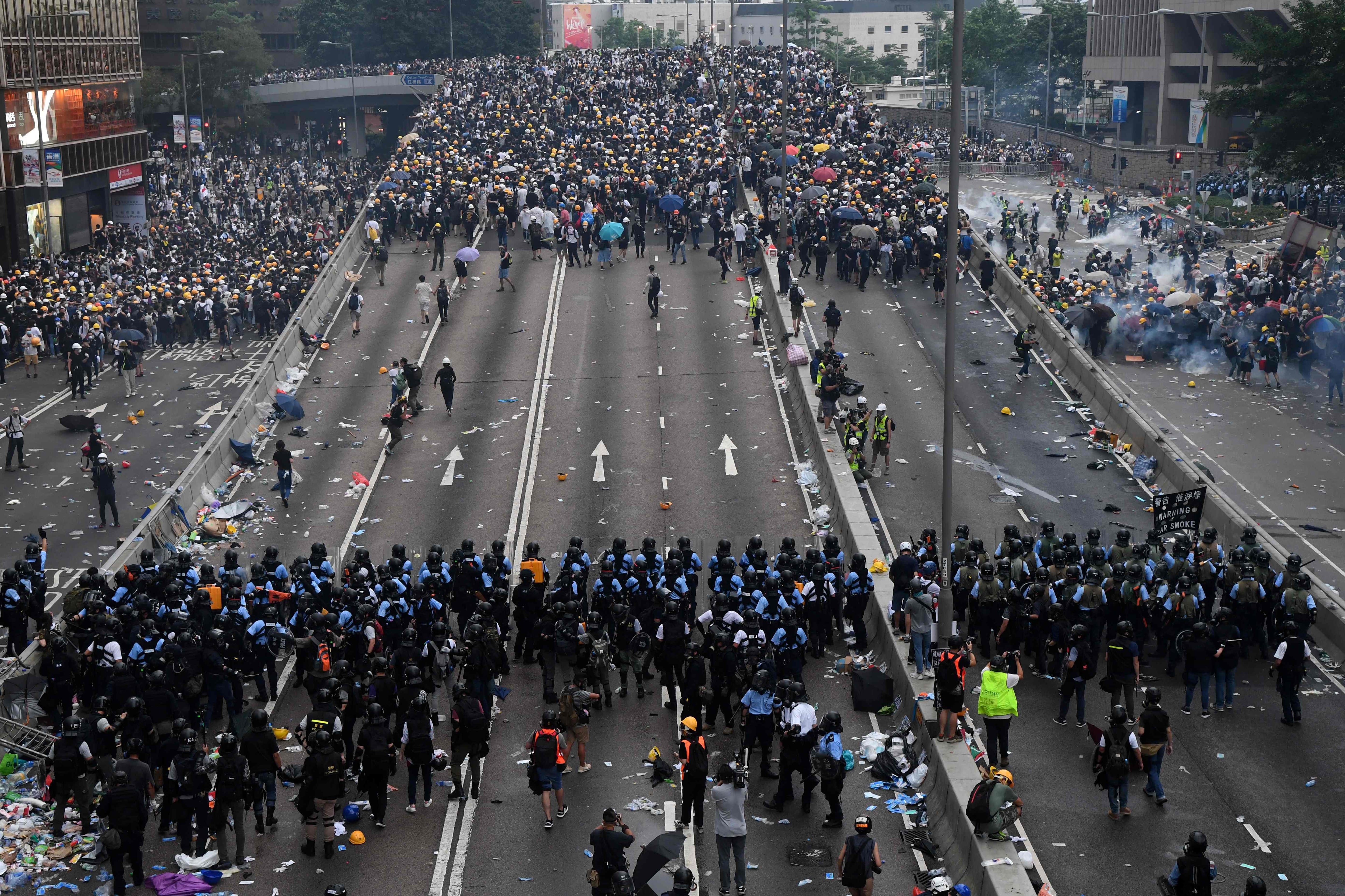 En estos meses la mayoría de demostraciones han sido pacíficas, pero también hubo grupos que tomaron el parlamento hongkonés y lo vandalizaron con mensajes en aerosol, e hicieron lo mismo con el aeropuerto internacional de la ciudad, paralizándolo por horas.