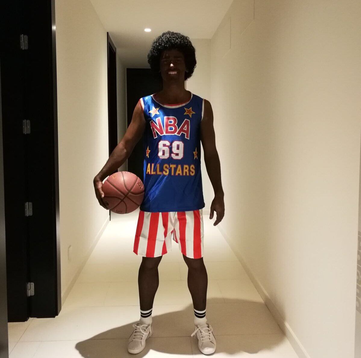 El jugador francés campeón del mundo (2018), amante del baloncesto y la NBA, subió a sus redes sociales una foto suya disfrazado de jugador de los Harlem Globetrotters. HIzo un ‘Backface’ de cuerpo entero que subió a Twitter con la leyenda: “Fiesta de los 80s”.