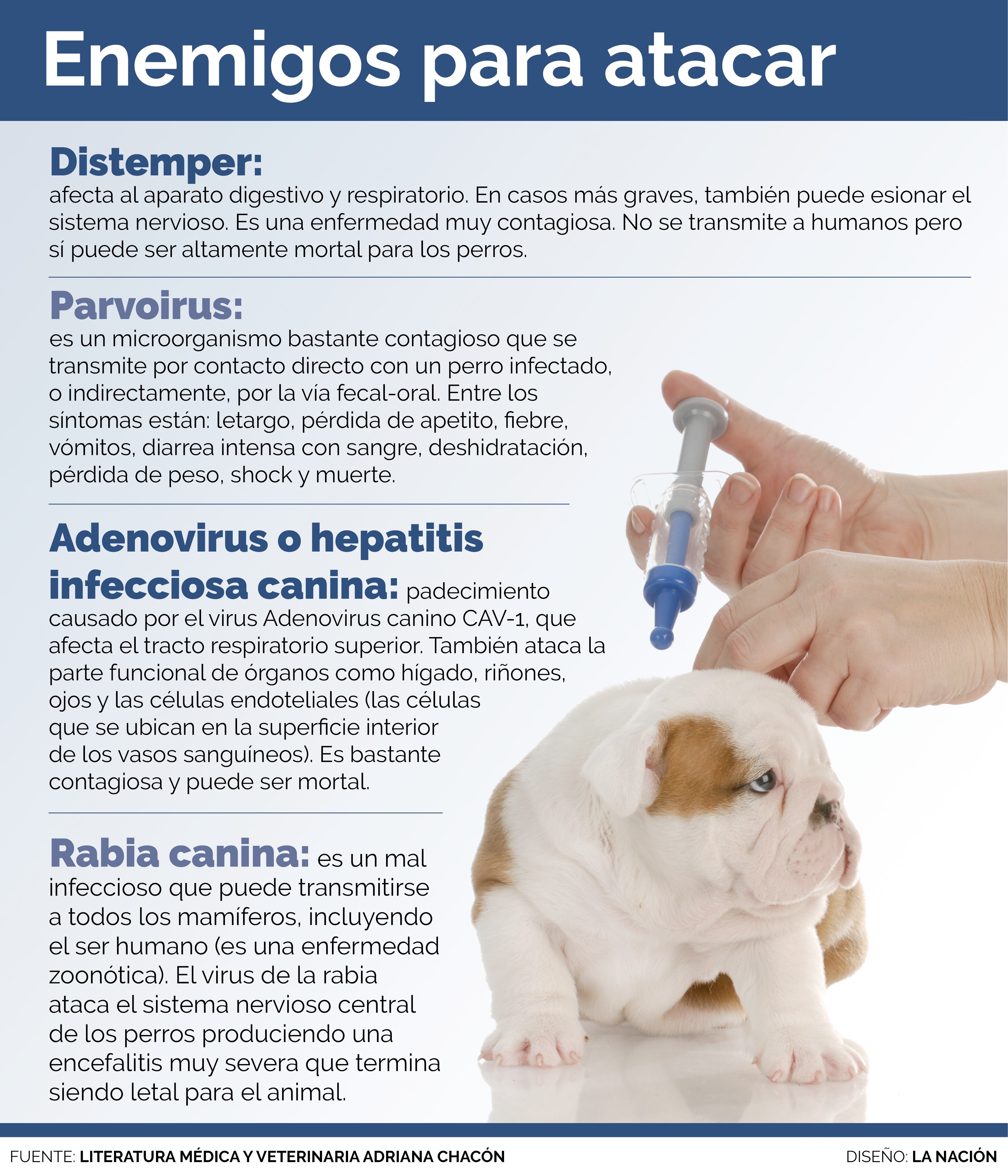 “Es muy importante que todas las vacunas que se le pongan al perro queden anotadas en una tarjeta (usualmente la entregan las veterinarias). Ahí debe venir el número de lote y fecha, pues es información útil para atenderlos y, además, sirve como documento legal para cuando el animal sale del país o bien, para corroborar si la mascota fue vacunada contra rabia, por ejemplo, en caso de haber mordido a alguien”, indicó Chacón.