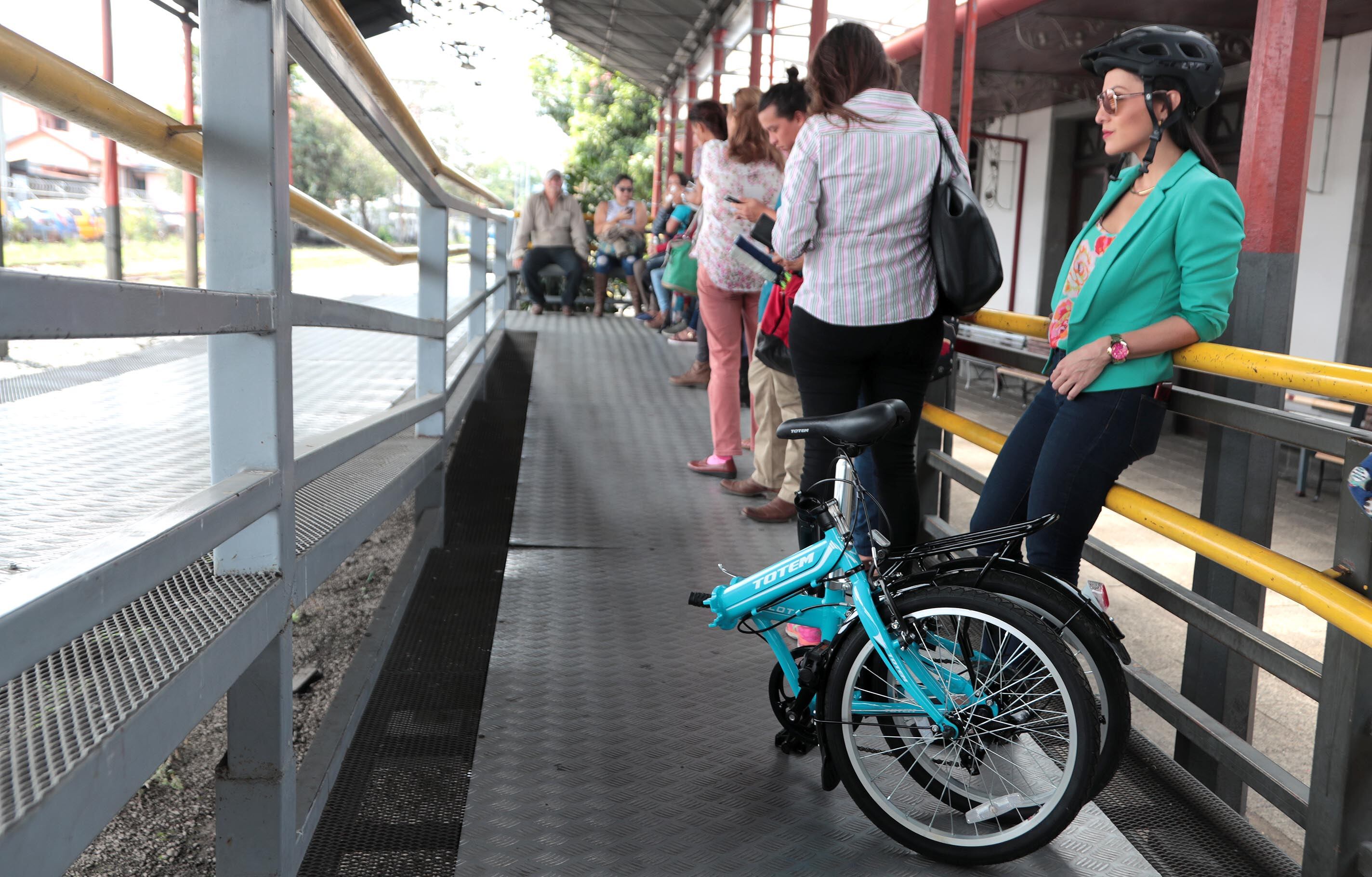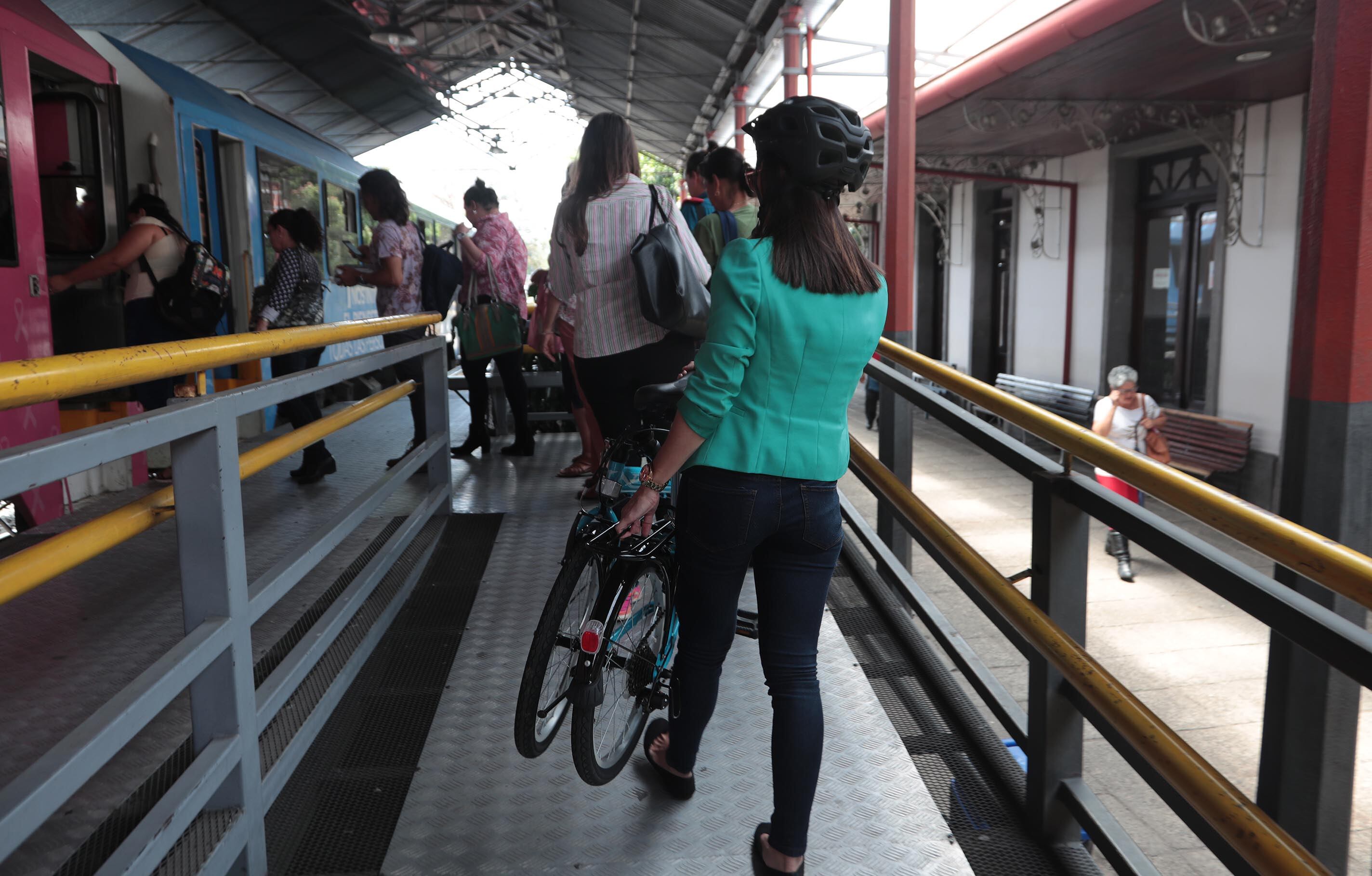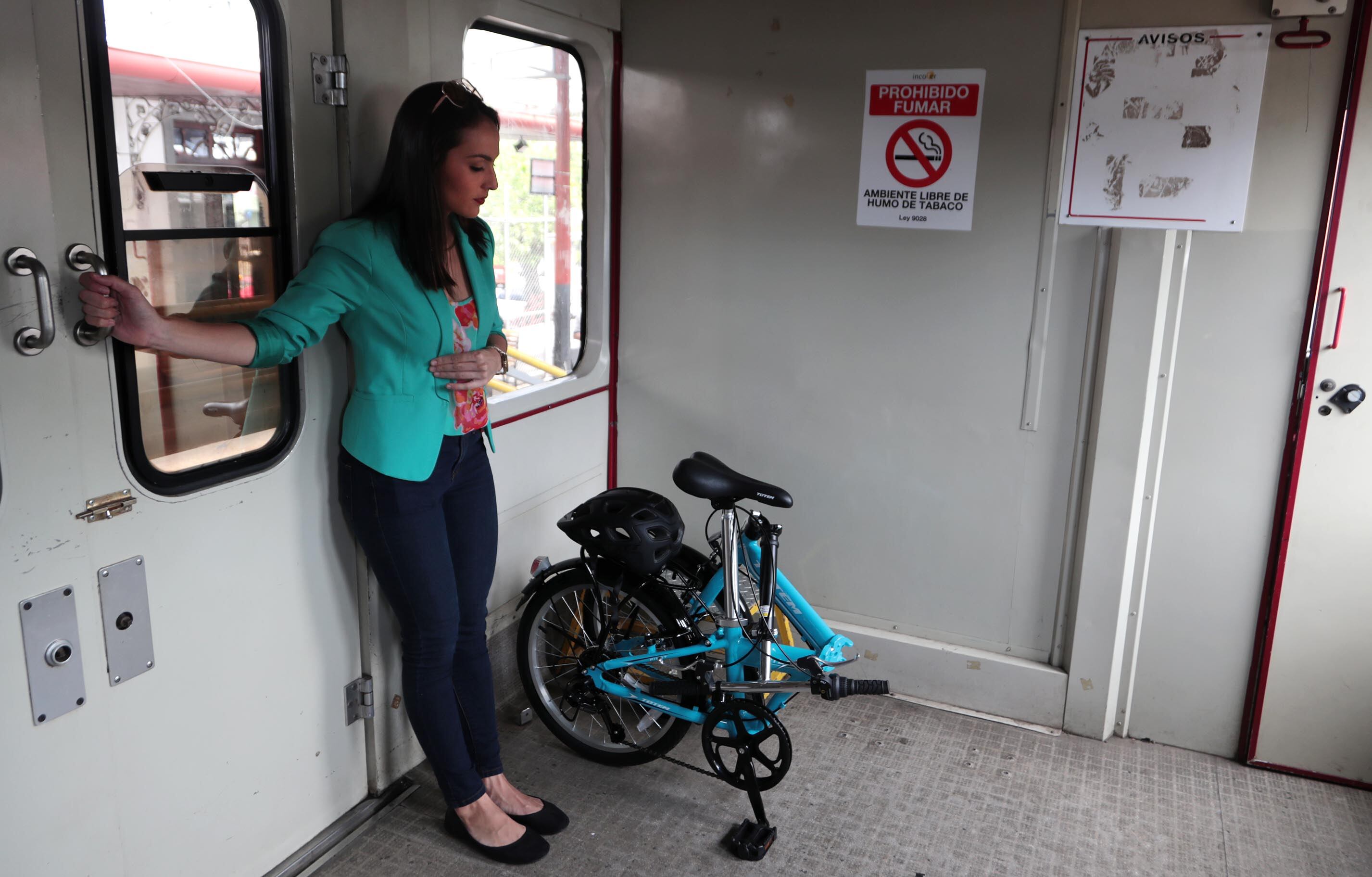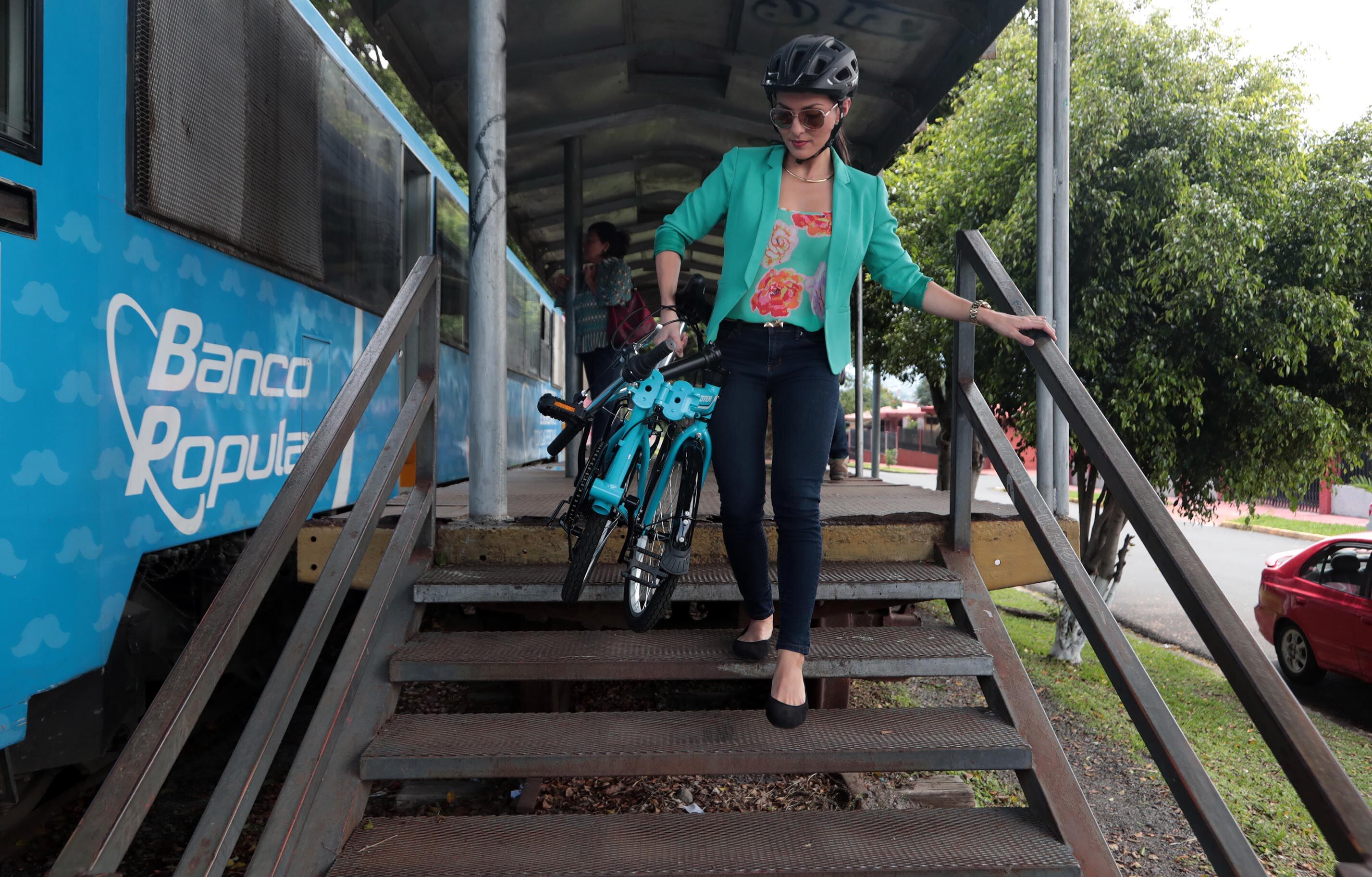 Cuando esta oriunda de Turrialba necesita hacer un mandado hacia el oeste de Curridabat y el tren está de por medio, no duda en alternar el uso de la bicicleta con ese medio masivo.