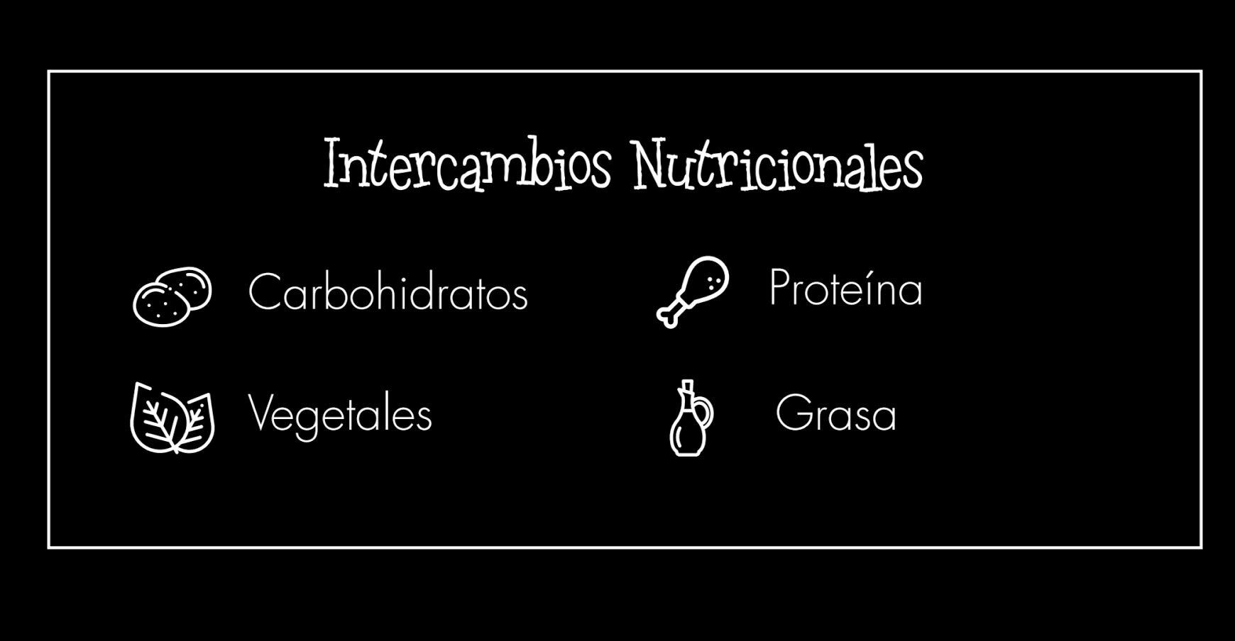 Un símbolo de muslito de pollo significa ‘proteína’. Un pequeño recipiente de vidrio (como el usado para vinagre balsámico) se refiere a ‘grasa’. Dos óvalos con forma de papas dan a entender que son ‘carbohidratos’. Y, finalmente, un dibujito de hojas representa los ‘vegetales’.