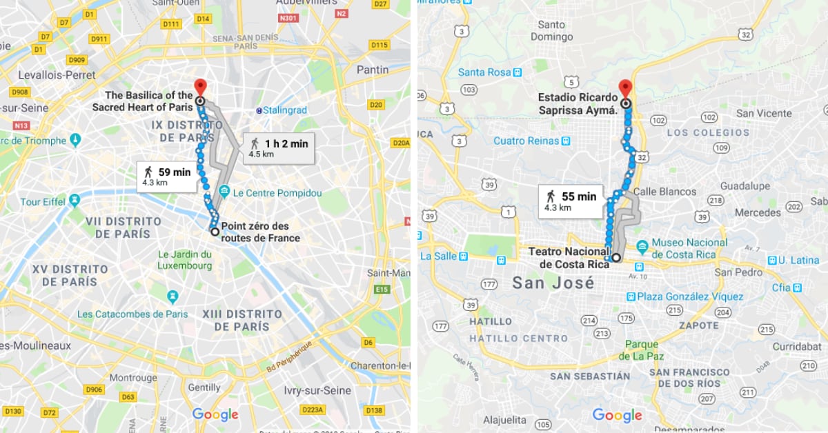 La distancia que me proponía a caminar en Francia era la misma que comprende el trayecto entre el Teatro Nacional y el Estadio Saprissa.