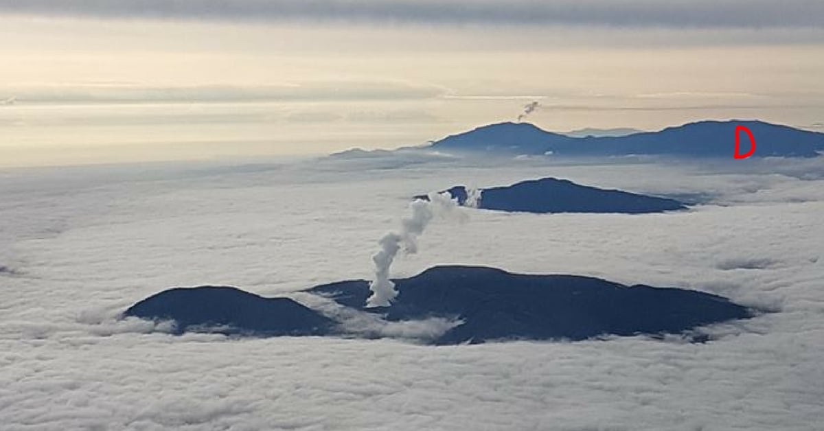 Cuatro volcanes de nuestra hermosa Cordillera Volcánica Central fueron vistos en sentido noroeste-sureste desde un avión. Tal y como atraviesa a Costa Rica el principal eje montañoso desde Guanacaste hasta el transfronterizo Parque Internacional La Amistad, en la Cordillera de Talamanca, mayoritariamente, en la provincia de Limón.
