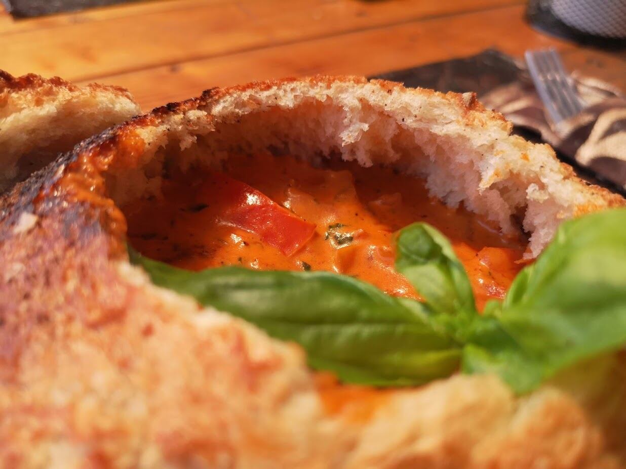 En este segundo párrafo le resumo que la picaña término medio que probé así como la crema de tomate dentro de un pan hogaza estaban fabulosas.