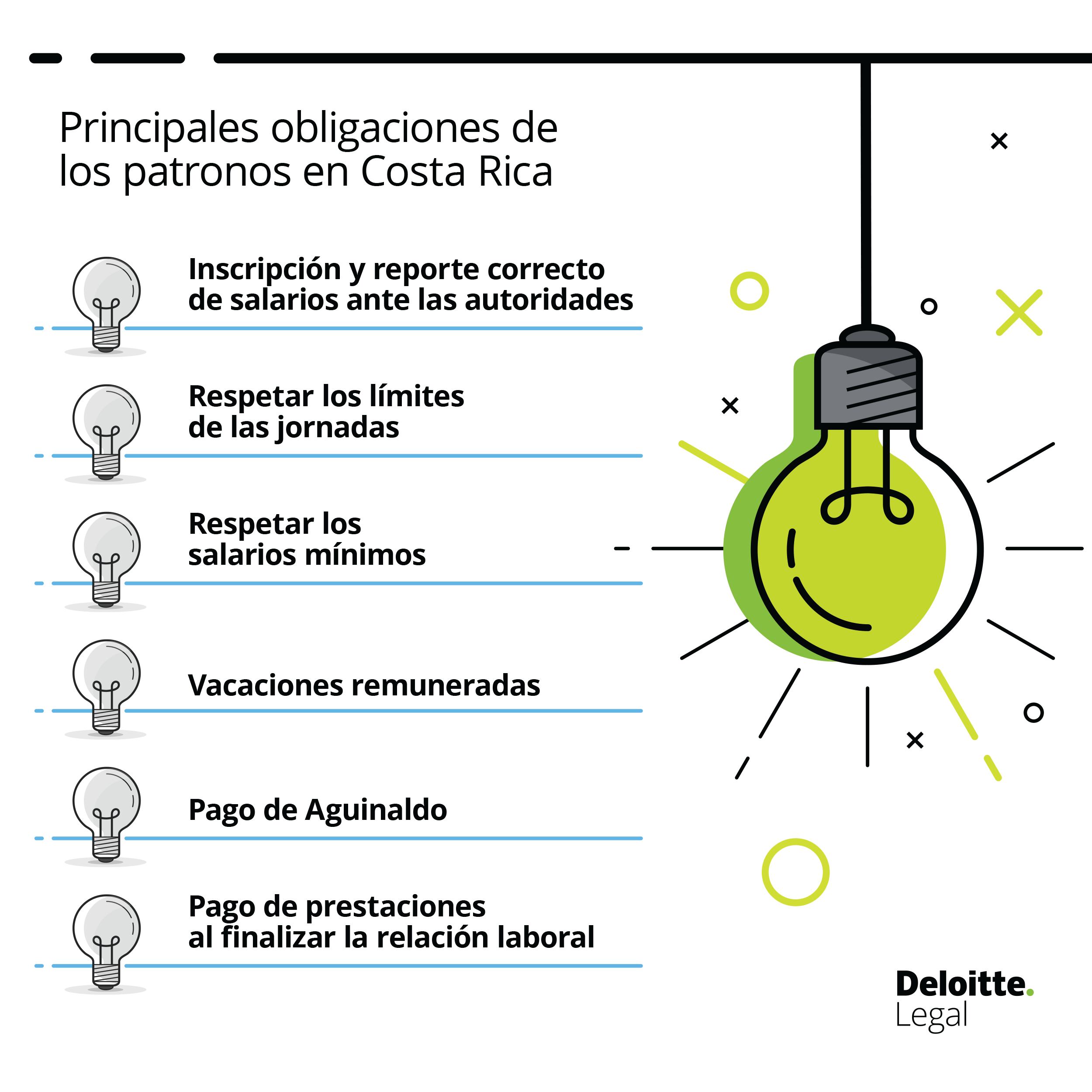 Estas son las principales obligaciones de los patronos en Costa Rica. El no acatamiento de estas obligaciones expone al patrono a denuncias por infracciones a las leyes laborales: